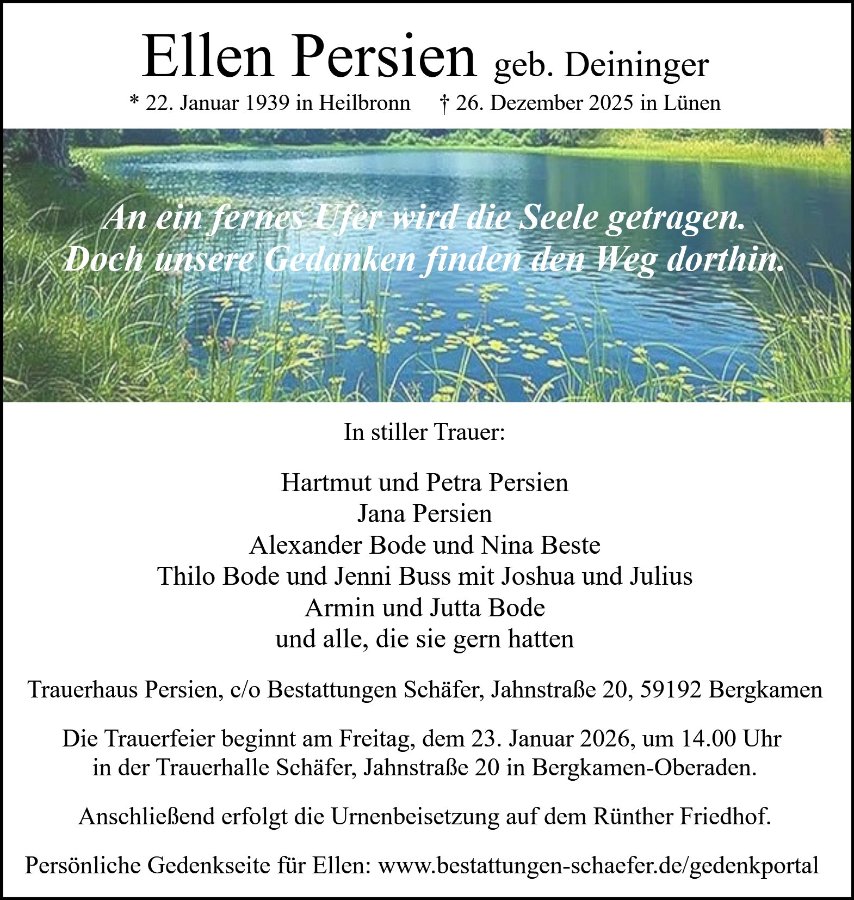 geboren am 22. Januar 1939 gestorben am 26. Dezember 2025