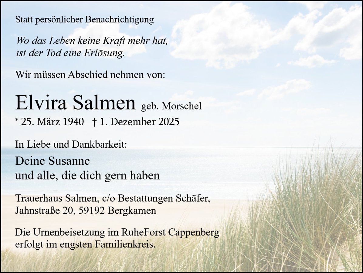 Elvira Salmengestorben am 1. Dezember 2025
