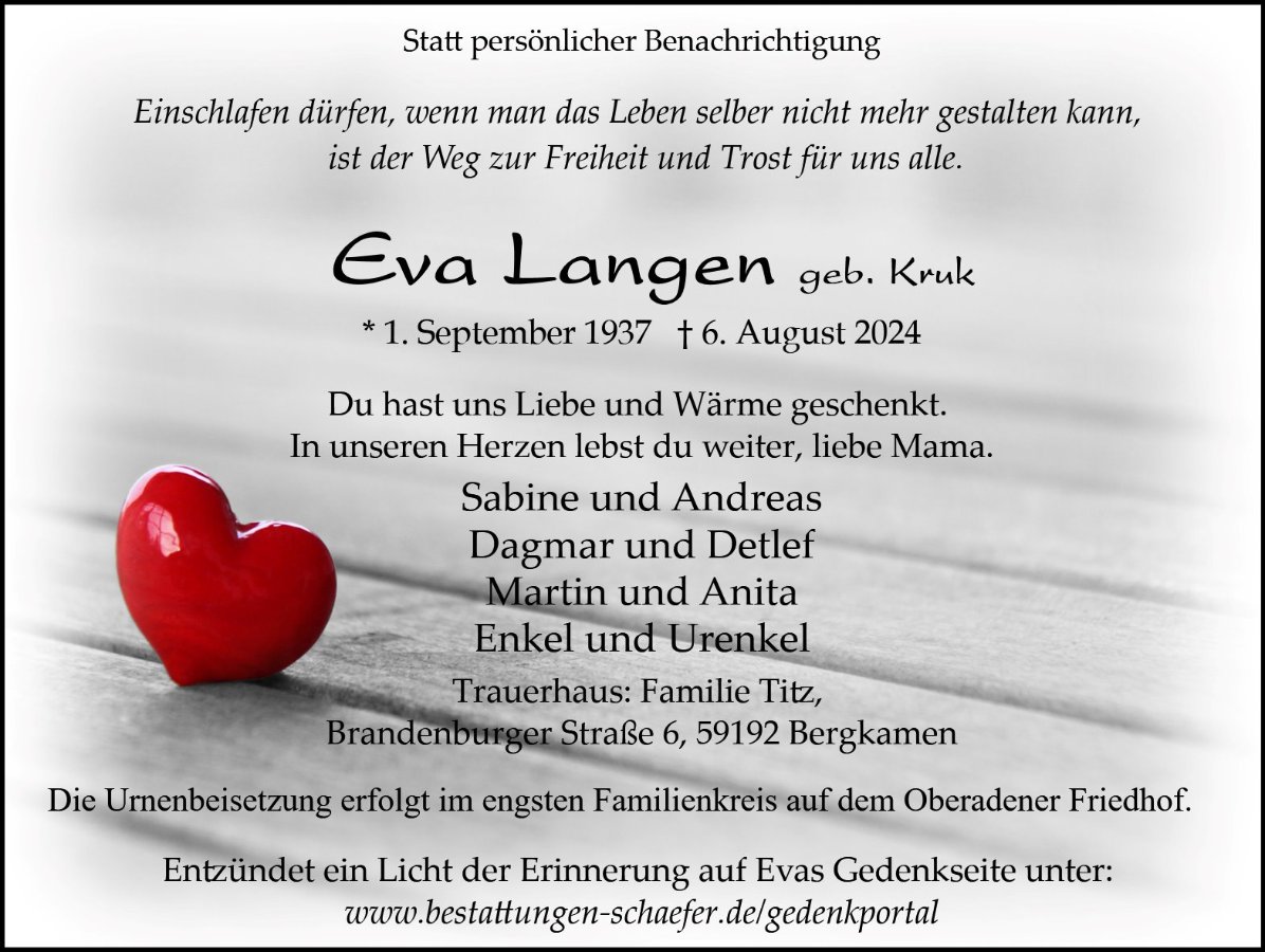 Eva war eine langjährige gute Freundin mit der wir viele schön Jahre verbracht haben. Von Sabine das Laufen beibringen bis zu gemeinsamen Urlauben, wir hatten immer eine gute Zeit wenn wir zusammen waren.