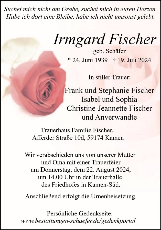 Irmgard Fischergestorben am 19. Juli 2024