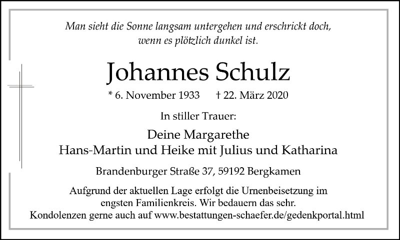 Ich werde Herrn Johannes Schulz stets in bester Erinnerung behalten.