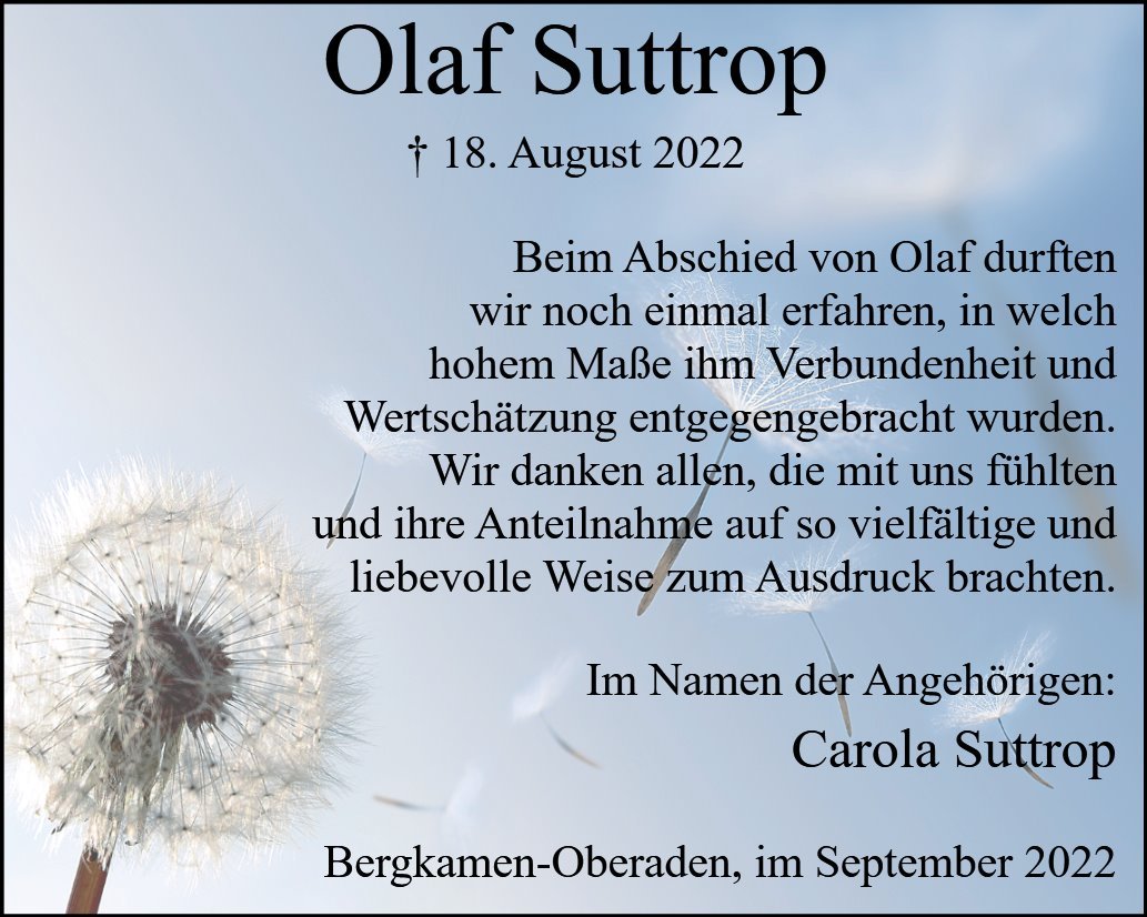 Herr Olaf Suttropgestorben am 18. August 2022