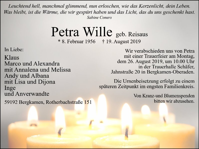 Frau Petra Wille geb. Reisaus