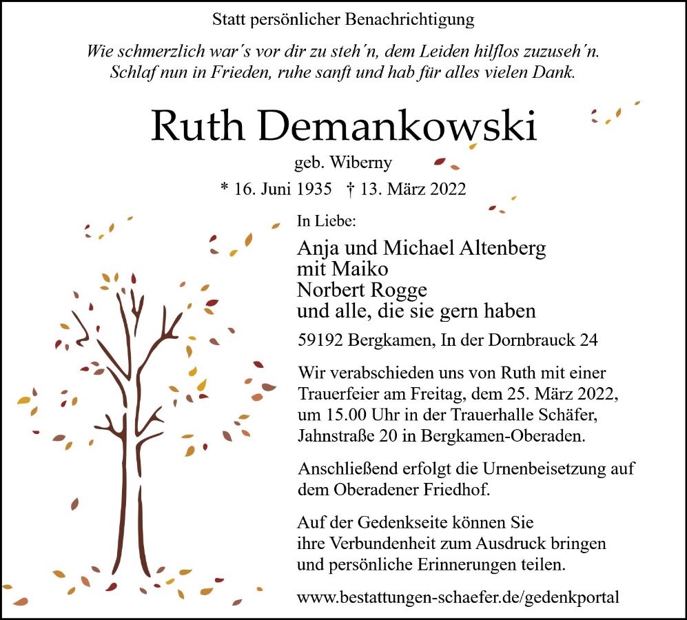 Frau Ruth Demankowski geb. Wiberny