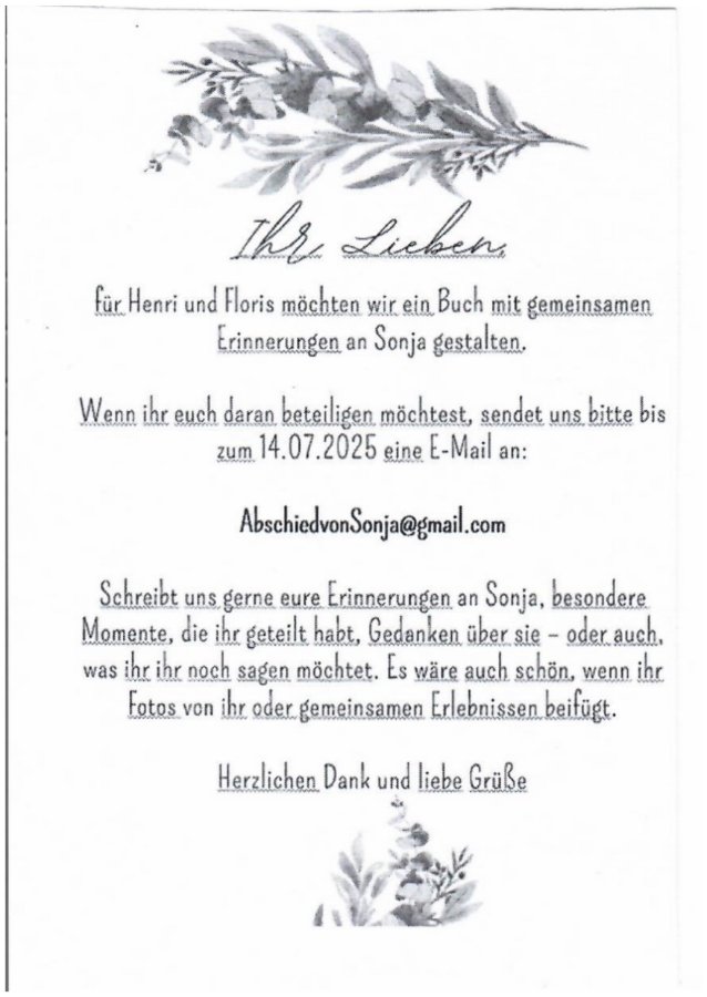 Lieber Christopher, liebe Familien und an alle die Sonja kannten.