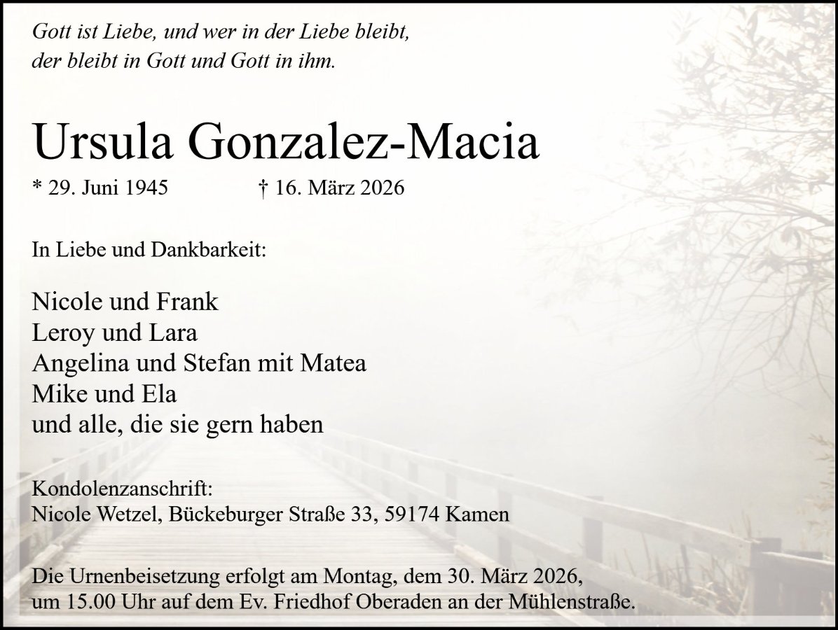 Frau Ursula Gonzalez-Macia geb. Weil