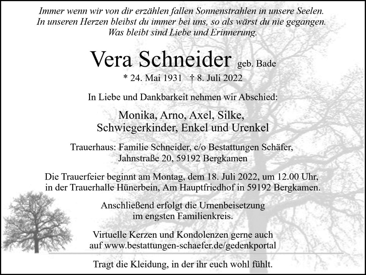 Frau Vera Schneider geb. Bade